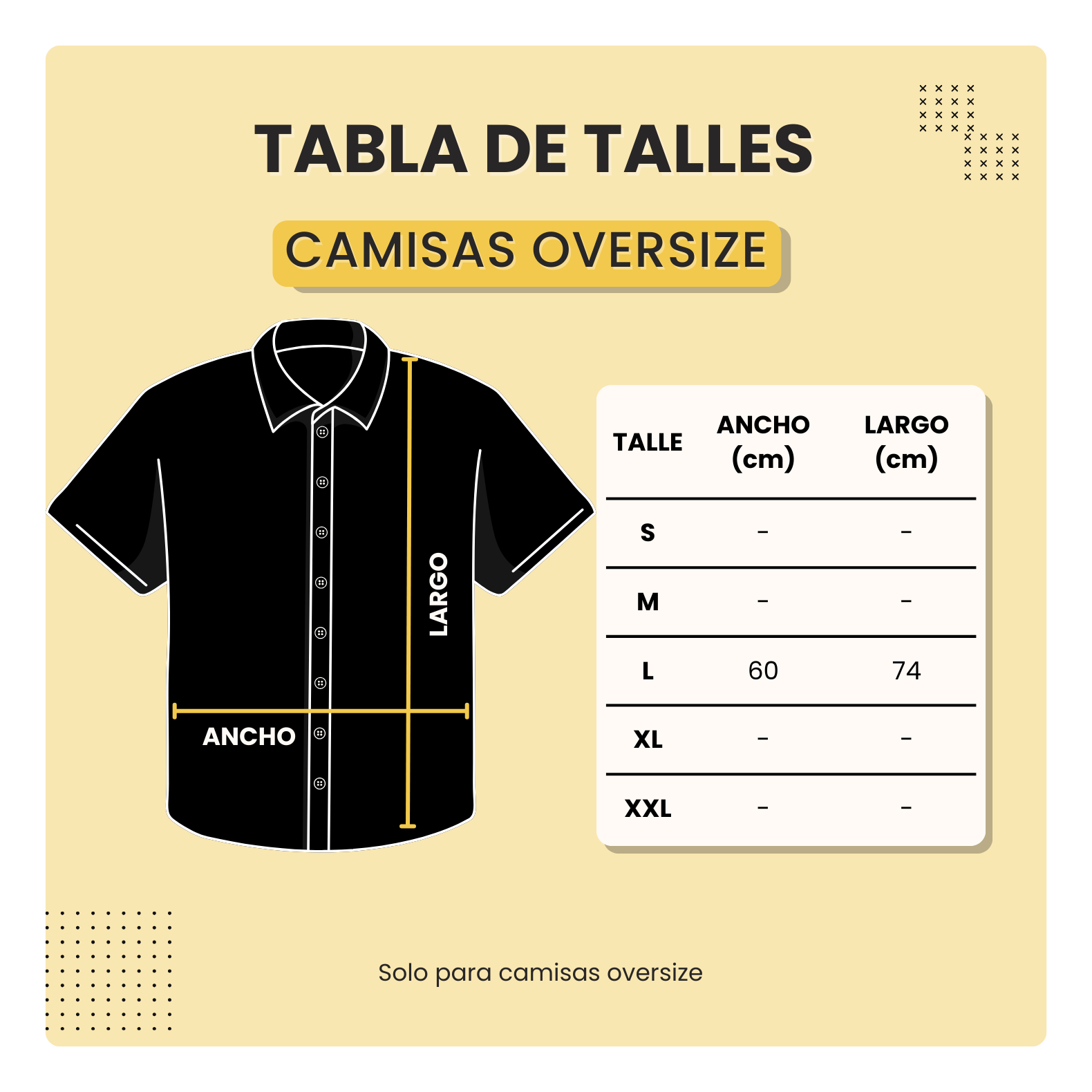 MODELO DE CAMISA TALLE ÚNICO, equivalente al talle L